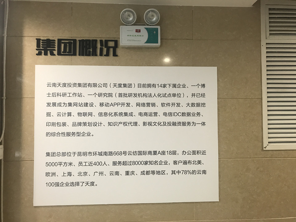 集团概况的文化墙对面就是咱们尊龙凯时更详细的“集团架构”,分别罗列出了重庆、昆明、成都三个总部的子公司,让客户对尊龙凯时集团名下的子公司有更深入的认识,也从正面证明了尊龙凯时12年积累下来的傲人的成果。