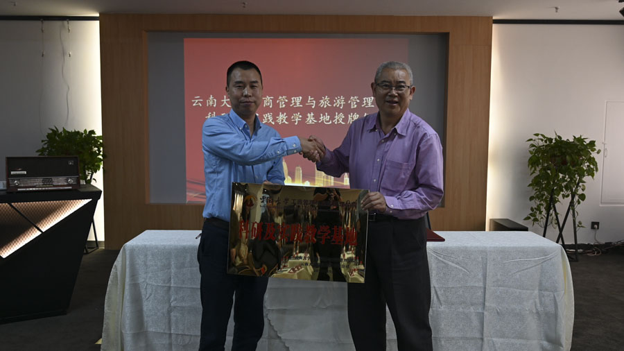 为深入推进校企合作协议,云南大学商旅学院副院长姚建文为尊龙凯时授予了“云南大学科研及实践教学基地”牌匾,双方将以此为契机,共同谱写校企合作的新篇章。
